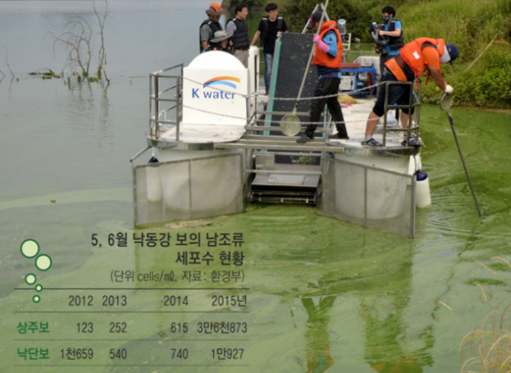 이번에 **호수에는 로터스코리아에서 자체 개발한 무인 자동 녹조제거 장치를 설치 하였습니다. 자동 녹조제거 장치는 반경 100M 이내에 있는 녹조를 자동으로 빨아들여 물과 녹조를 분리 배출하는 장치입니다. 장치 설치후 일주일 만에 주면 녹조의 70% 정도가 제거되는 성과를 거두었습니다. |